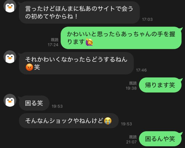 「ほんまに私あのサイトで会うの初めてやからね!」